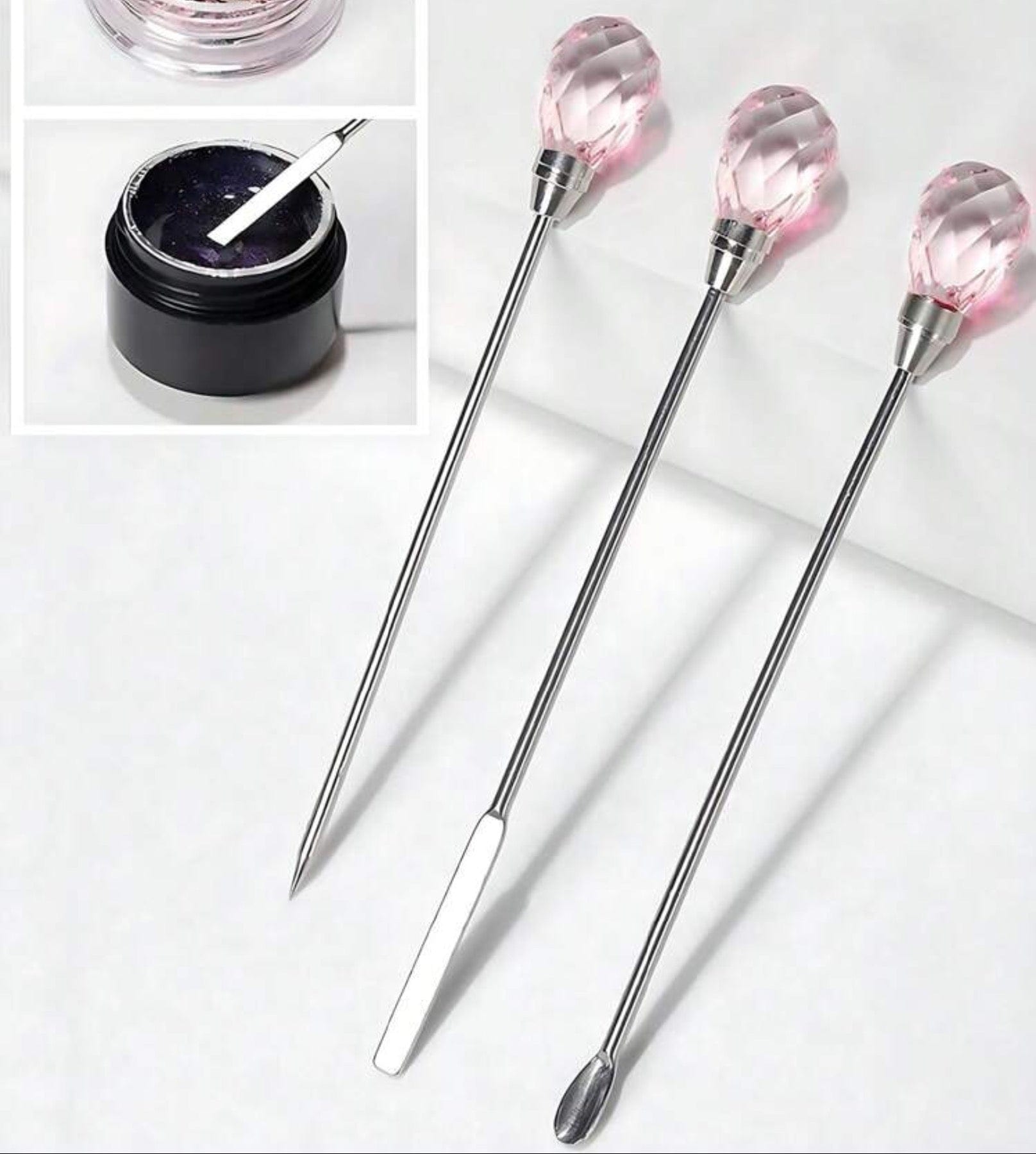 Alliez élégance et fonctionnalité avec cet ensemble de trois outils pour ongles dotés d’une magnifique poignée en forme de cristal rose. Parfaits pour les nail artists professionnels ou passionnés, ils vous permettent de manipuler, mélanger et appliquer vos produits avec précision.