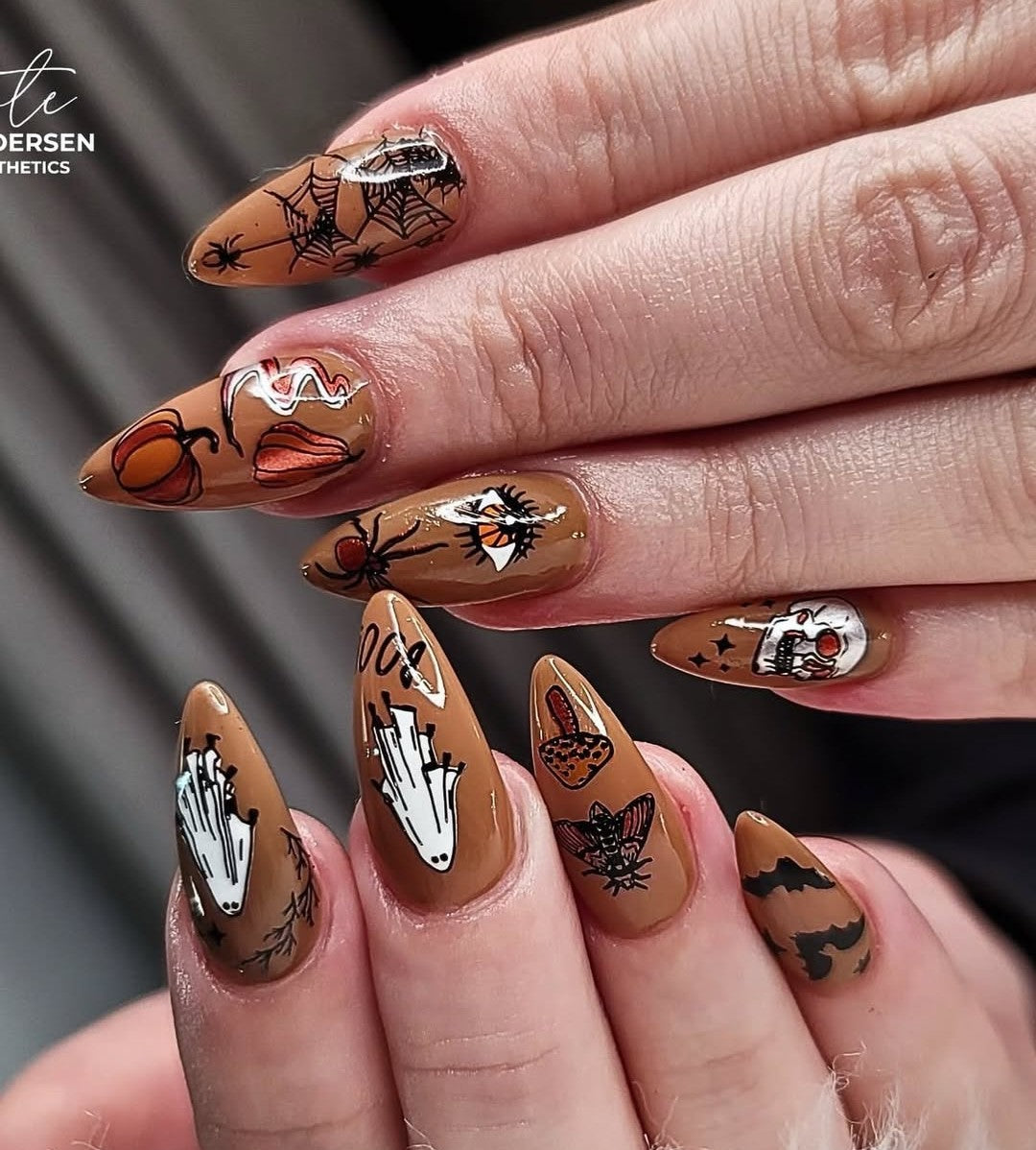 Stylé boho pour Halloween avec tartan et motif pour remplir l’ongle