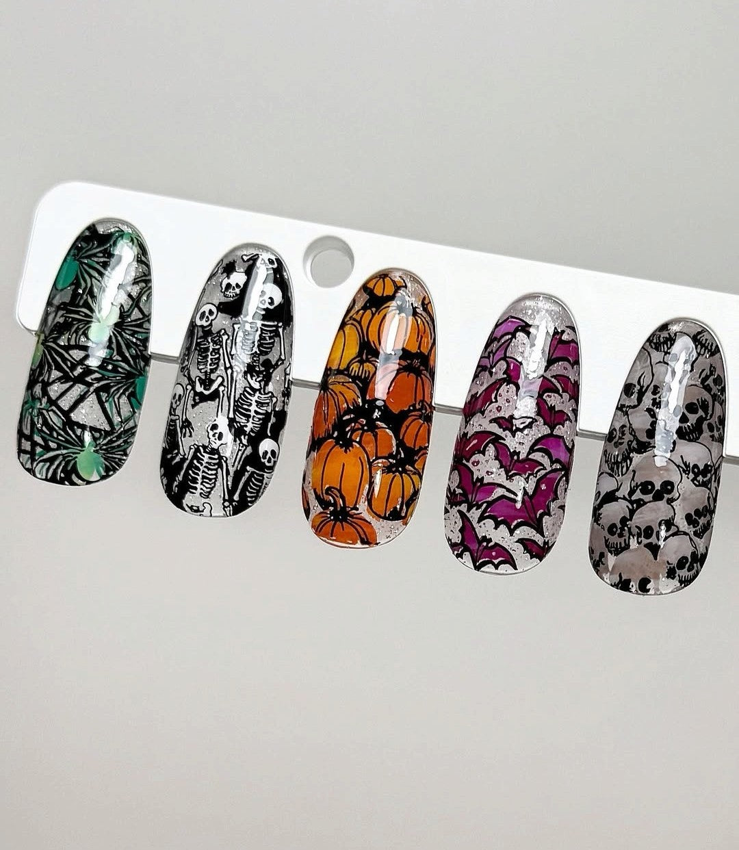La plaque CjS-H-122 regroupe des designs pleins de caractĂšre â Ă la fois effrayants et adorables â parfaits pour dĂ©corer vos ongles tout au long du mois dâoctobre !
