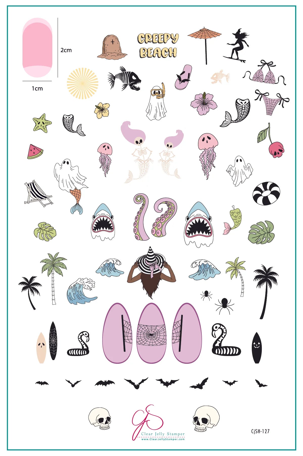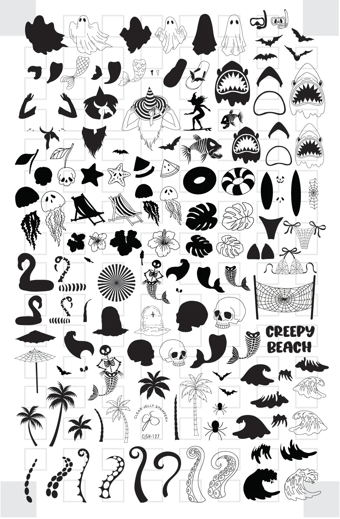 🌊🦈 Creepy Beach emmène Halloween directement sur le rivage ! Cette plaque étrange-rencontre-tropicale regorge de requins effrayants, de surfeurs hantés, de palmiers sinistres et de détails côtiers effrayants. Parfait pour créer du nail art qui est à la partie l'ambiance de la plage, la peur d'Halloween. Que vous alliez pour un plaisir macabre ou pour une vague perverse, cette plaque a tous les éléments côtiers effrayants dont vous avez besoin pour une manure d'Halloween avec une touche. 👻🌴✨