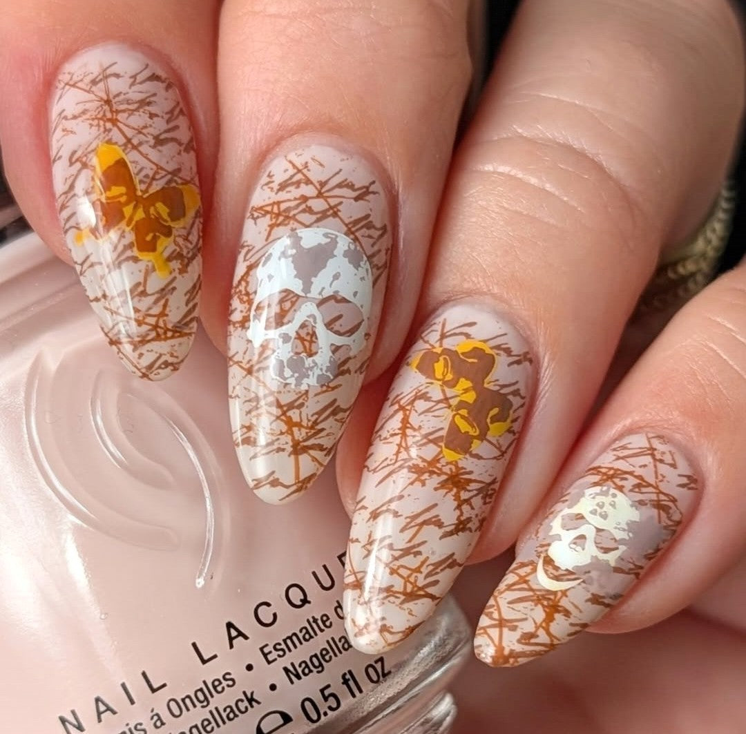 🦋💀 Macabre Muse est un mélange d'une beauté obsédante de sombre et de délicatesse. Cette plaque présente des crânes élégants, des papillons éthérés, des ailes squelettiques et des détails tourbillonnants qui apportent un art étrange à vos ongles. Parfait pour ceux qui aiment Halloween avec une touche de romance gothique, c'est la plaque ultime pour créer des designs à la fois effrayants et époustouflants.