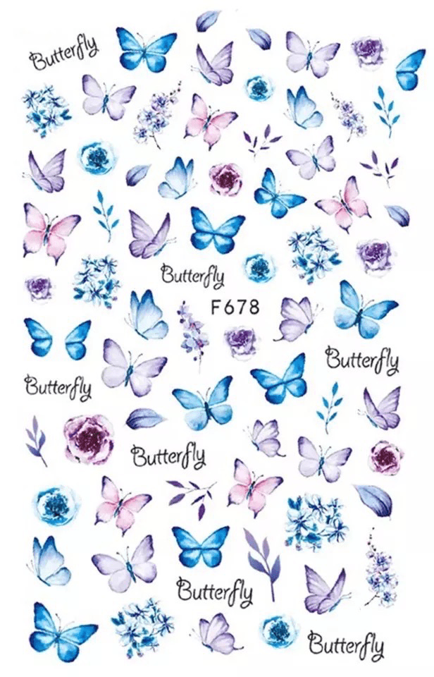 Autocollant pour ongles â F678 Blue & Lavender Butterflies đŠđ