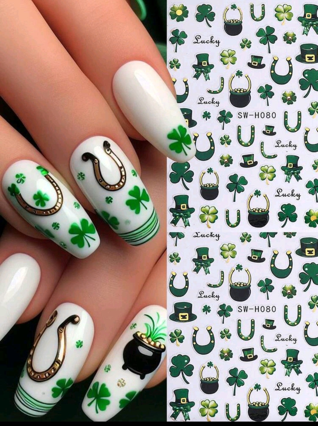 🍀✨ Autocollants nail art – Chance & Trèfles (St-Patrick)