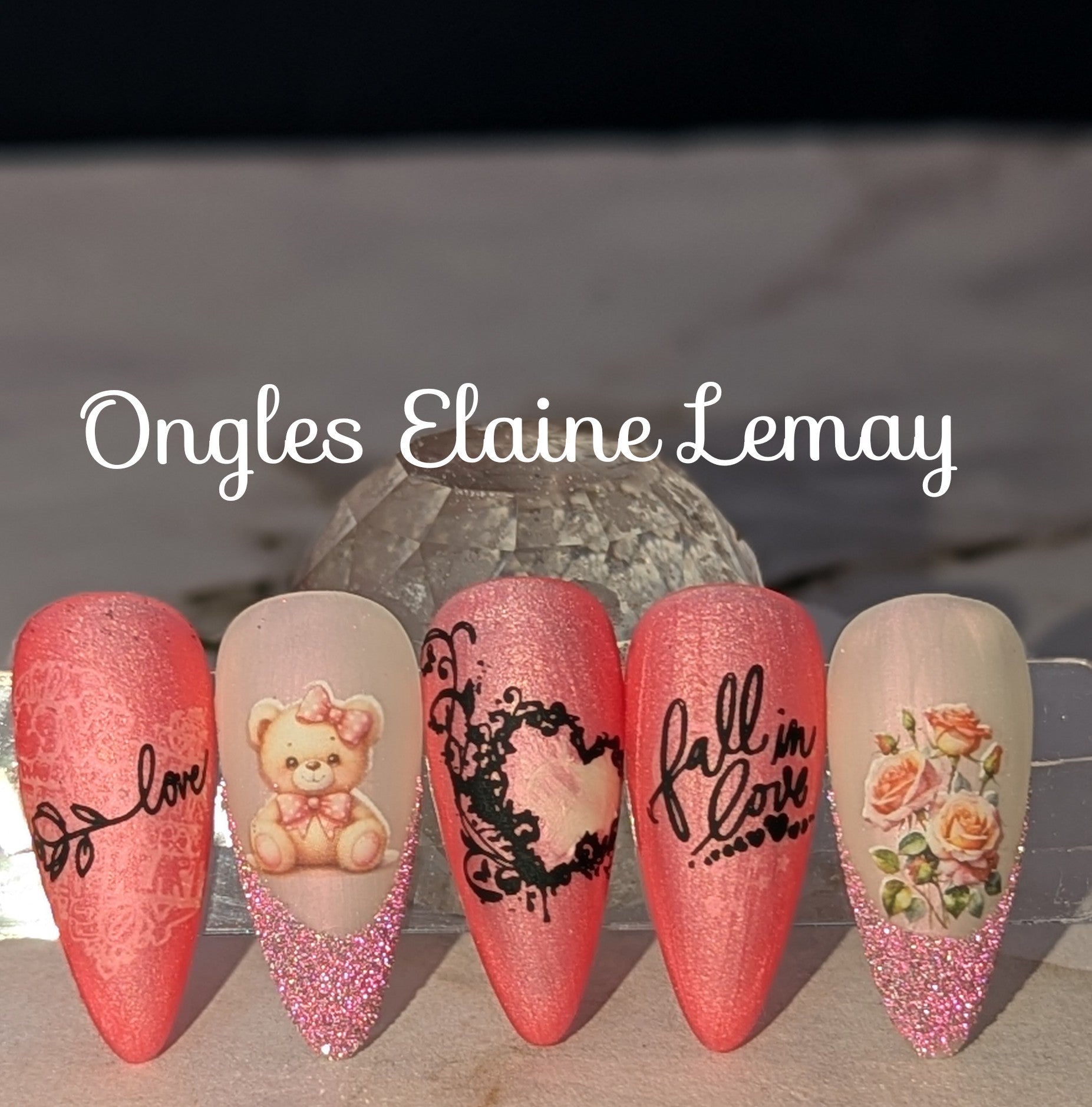 Ces water decals ultra fins s’intègrent parfaitement à l’ongle pour un effet peint à la main, sans surépaisseur. Parfaits pour la Saint-Valentin, les poses romantiques, les occasions spéciales ou simplement pour offrir à vos clientes un nail art chic et attendrissant.
