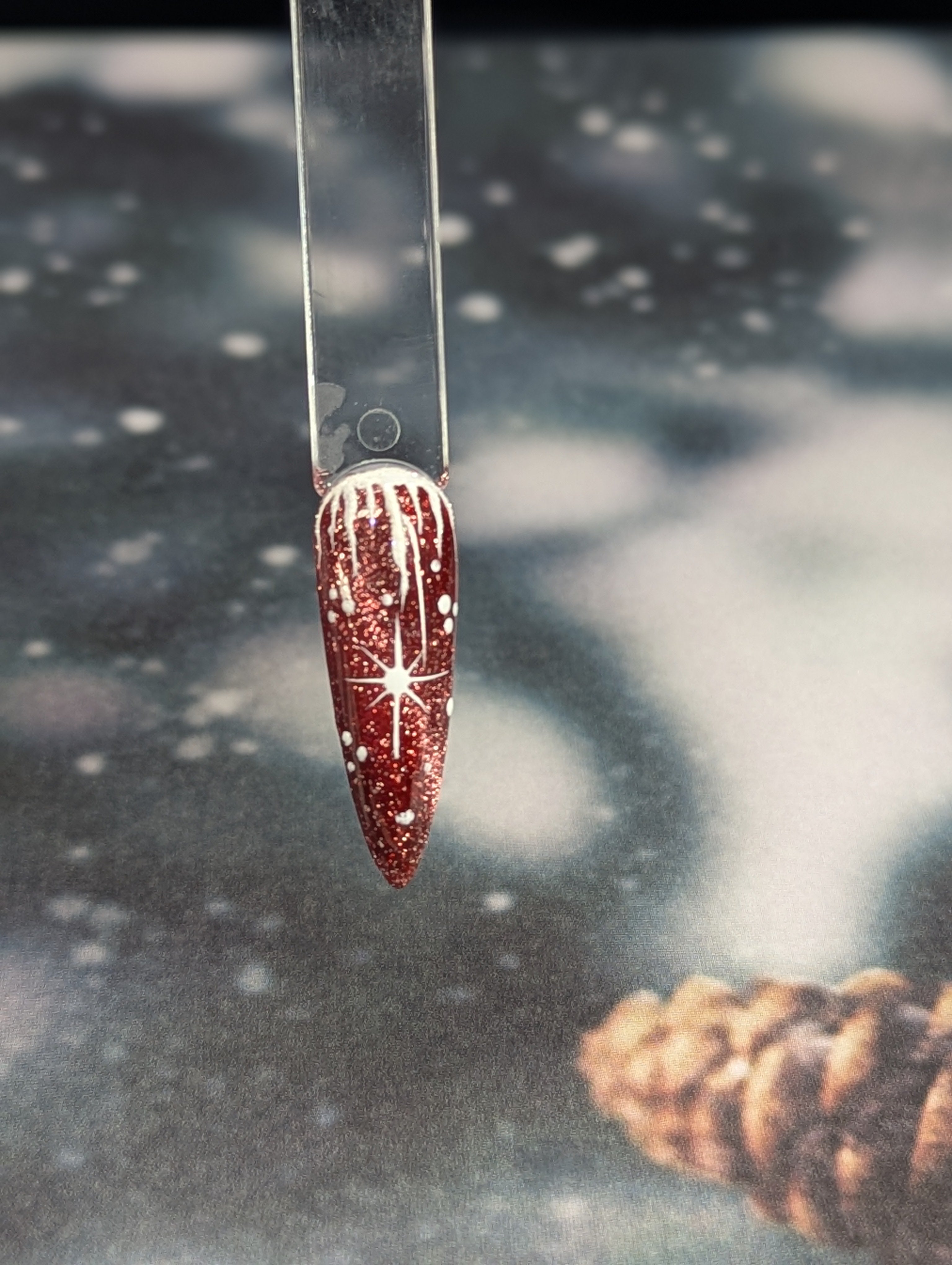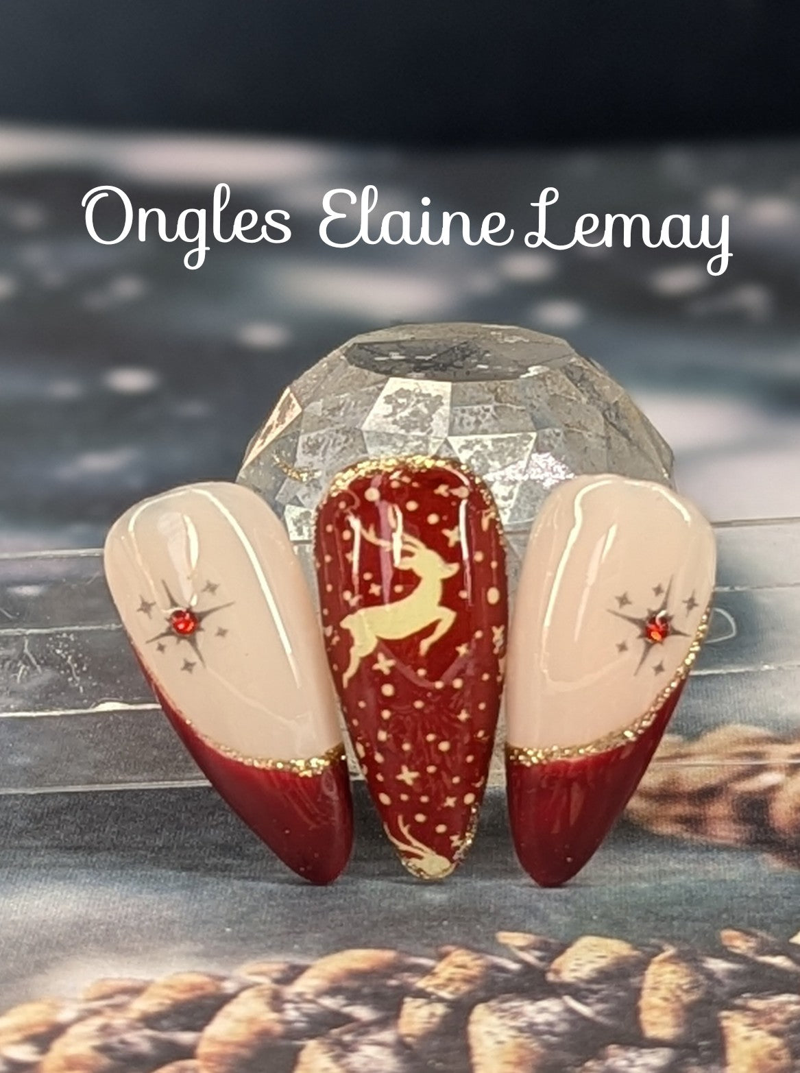 - 10 bouteilles GEL POLISH pleine grandeur : 1 base en caoutchouc bordeaux | 1 couche de finition sans lingette avec flocons rouges, or et bleus | 3 gels crème | 1 gel chatoyant | 3 gels pour les yeux de chat | 1 gel laiteux