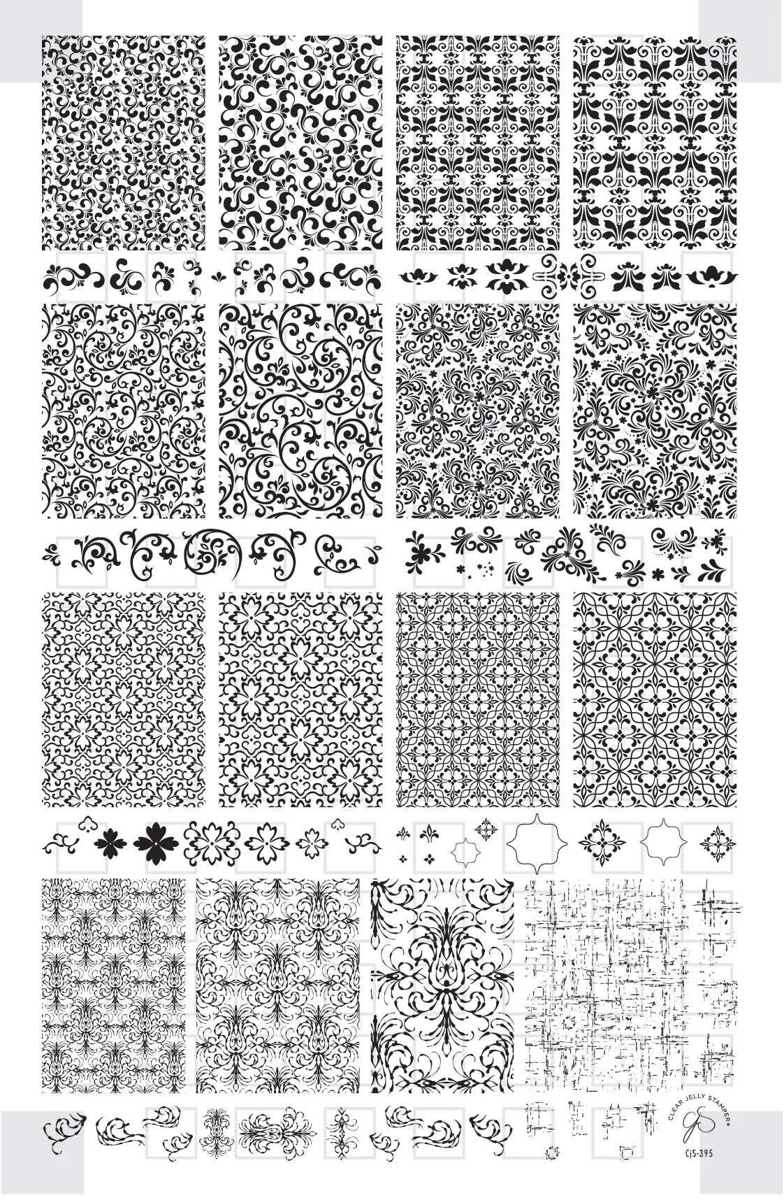 La plaque de stamping CJS-395 de Clear Jelly Stamper est un incontournable pour créer des nail arts chics, raffinés et sophistiqués. Elle propose une vaste sélection de motifs baroques, floraux et arabesques, parfaits pour des designs élégants, classiques ou luxueux.