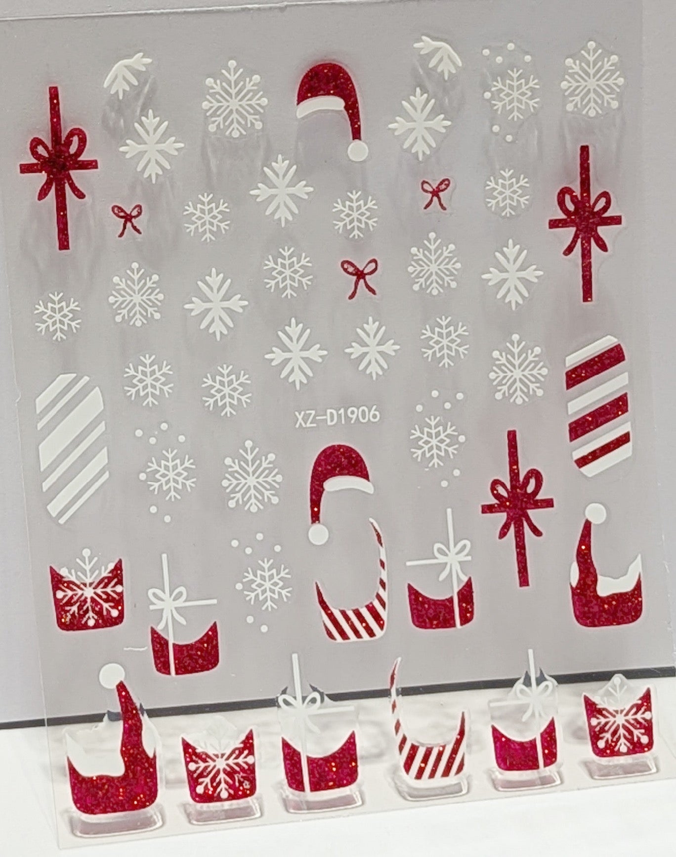 🎅 Autocollants Nail Art – Chapeaux & Cadeaux de Noël (XZ-D1906)