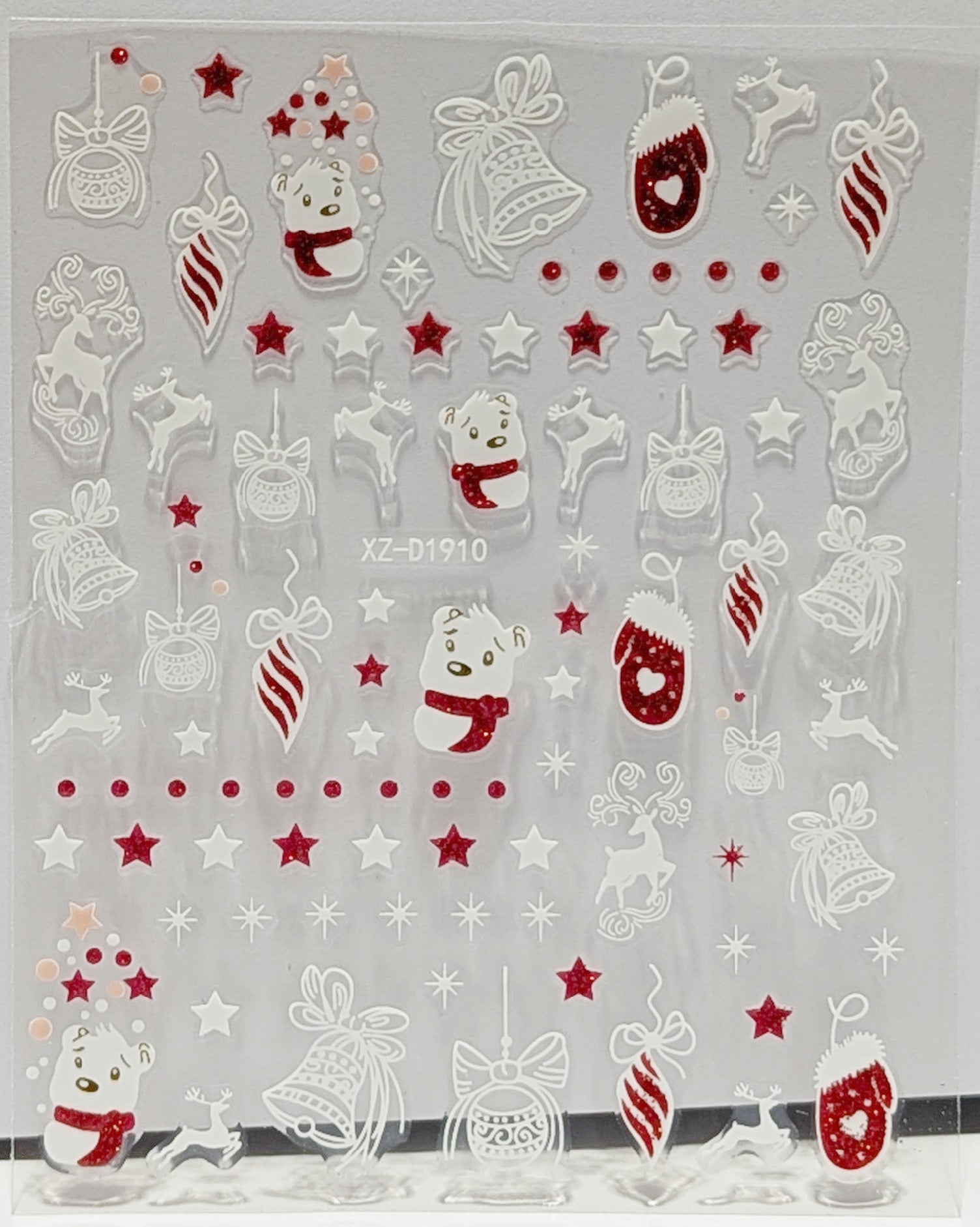 🐻 Autocollants Nail Art – Ours Polaire & Clochettes de Noël (XZ-D1910)
