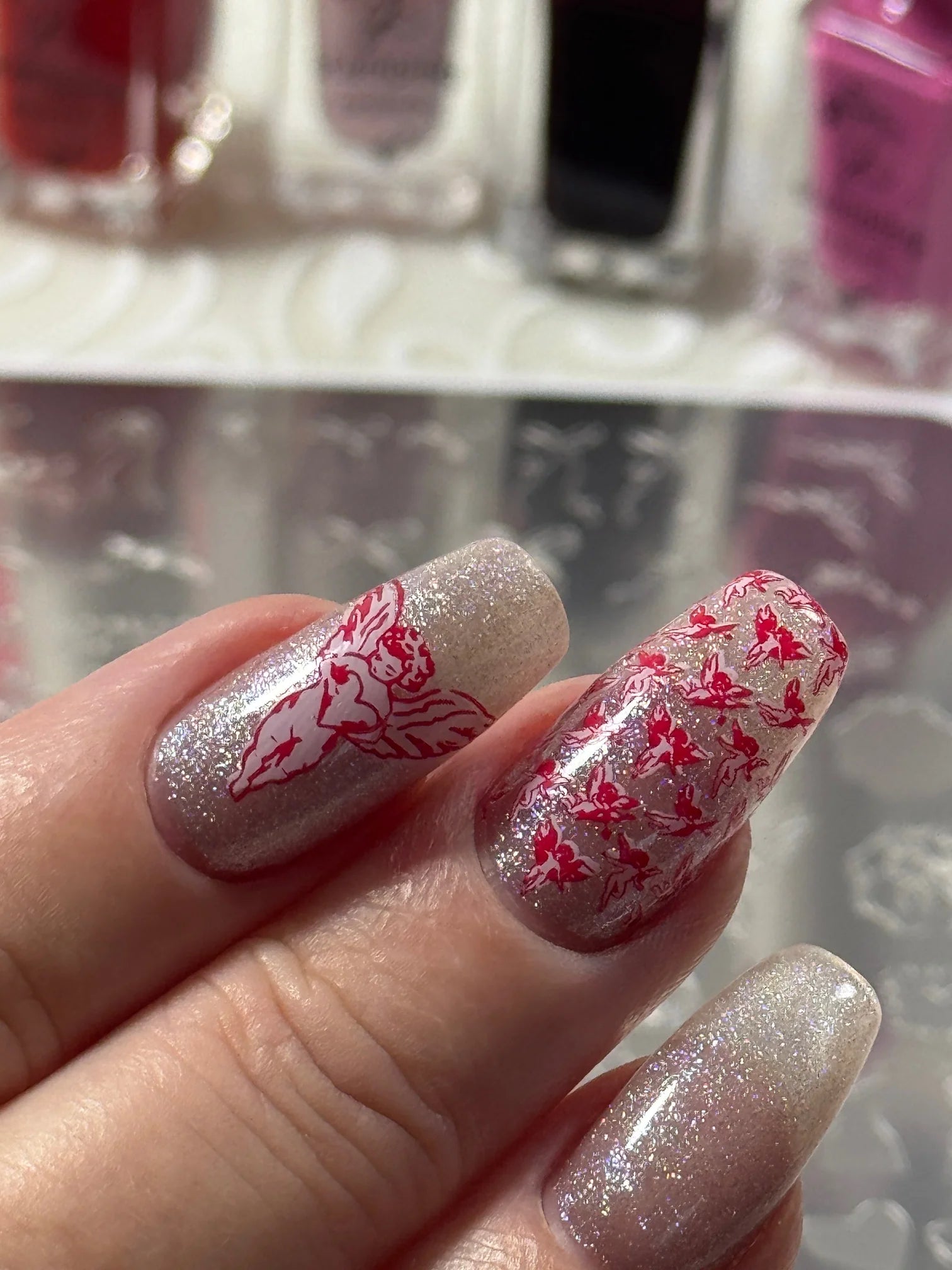 Tamponnez votre parfaite manucure de la Saint-Valentin avec Cupid's Canvas - une plaque d'estampage romantique en couches remplie d'adorables détails Cupidon, de cœurs, de verres à vin, d'arcs, de chocolats et de doux accents de la journée de l'amour. Mélangez, assortissez et marchez votre chemin vers des ongles séduisants et amusants qui sont parfaits pour une soirée de rendez-vous, Galentine ou chaque fois que vous ressentez l'amour. 💕🍫💅