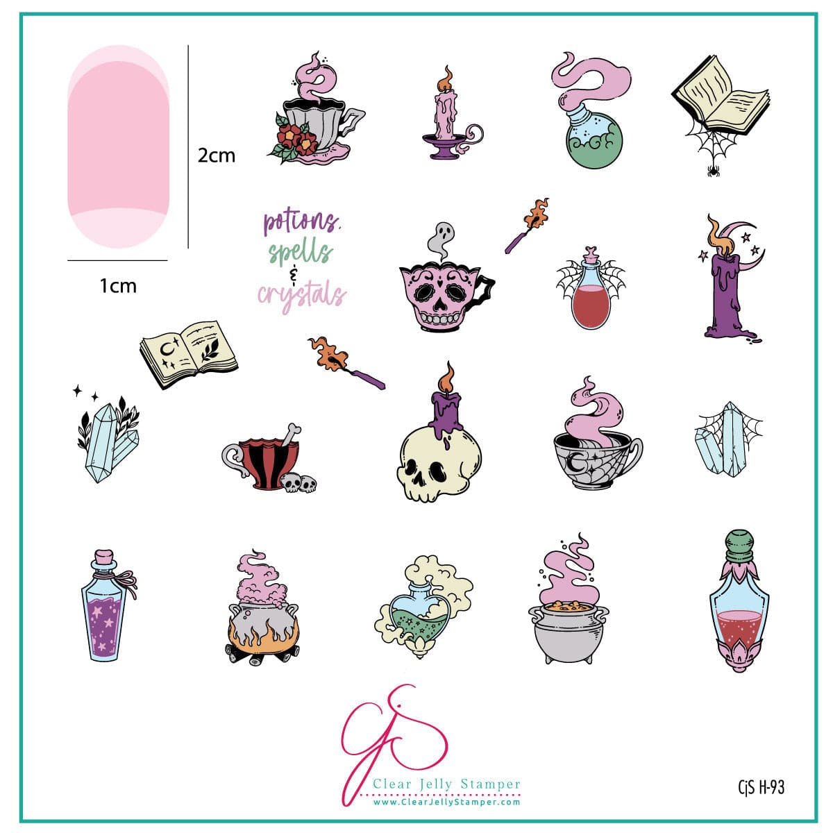 Faites de la magie avec (CjSH-93) ! Cette plaque de stamping en acier à plusieurs couches pour nail art a tout pour plaire : des potions d'Halloween, des cristaux envoûtants, des crânes et des toiles effrayants, des fantômes effrayants, des pierres précieuses divines et des chaudrons de sorcellerie, ainsi qu'une tasse en forme de crâne, des bougies et des mèches, et bien plus encore ! Et n'oubliez pas la lune et les étoiles, et même quelques fleurs. Devenez une sorcière avec CjSH-93 dès aujourd'hui !
