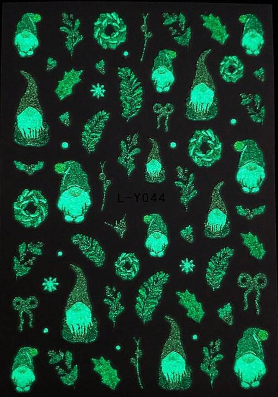 ⭐ Autocollants Nail Art – L-Y044 Gnomes & Foliages de Noël (Glow in the Dark)⭐