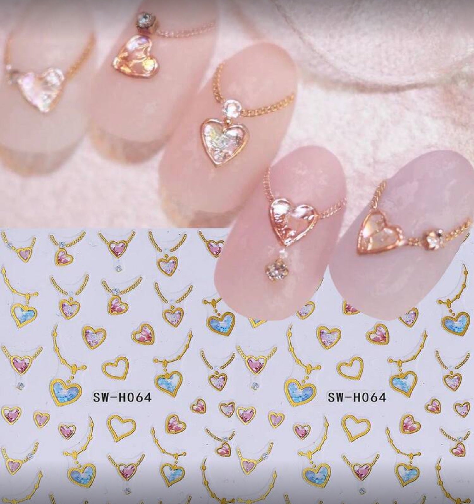 💖 Autocollants nail art « Cœurs bijoux & colliers » – SW-H064