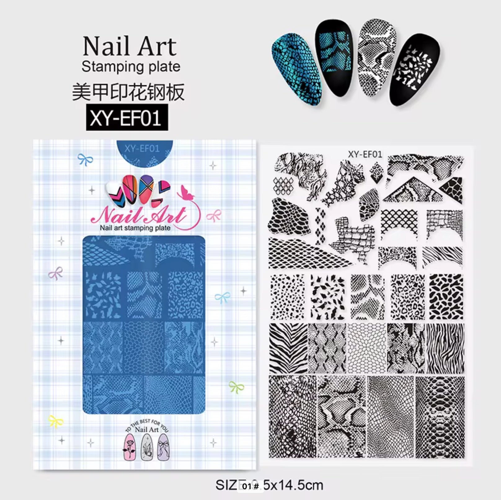 Plaque de stamping XY-EF01 – Motifs Animaux & Textures